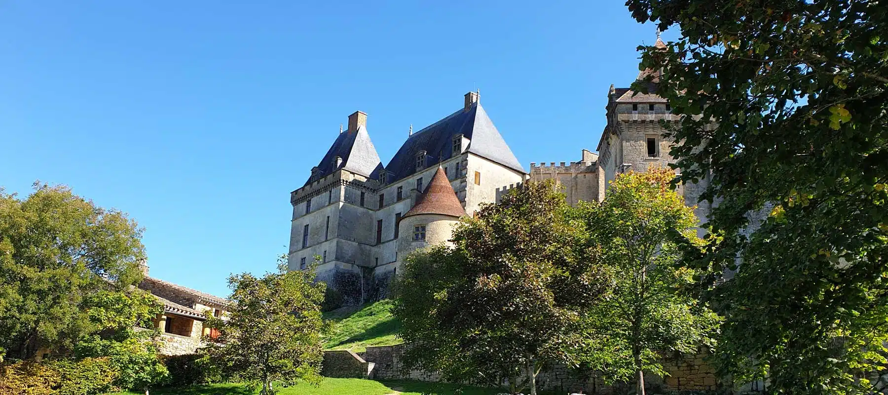 Siège d’une des 4 baronnies du Périgord, le Château de Biron a subi de nombreux remaniements architecturaux au fil des siècles. Entre le 12ème et le 18ème siècle, chaque période lui a en effet laissé une empreinte, qui fait aujourd’hui tout son charme et son attrait. Il n’y a aucune décoration dans ce château, aucun meuble, mais cela ne se remarque pas. La beauté de son architecture intérieure et extérieure surpasse toutes les décorations du monde. Les escaliers de pierres en colimaçon, les charpentes de bois imposantes, les boiseries d’exception !